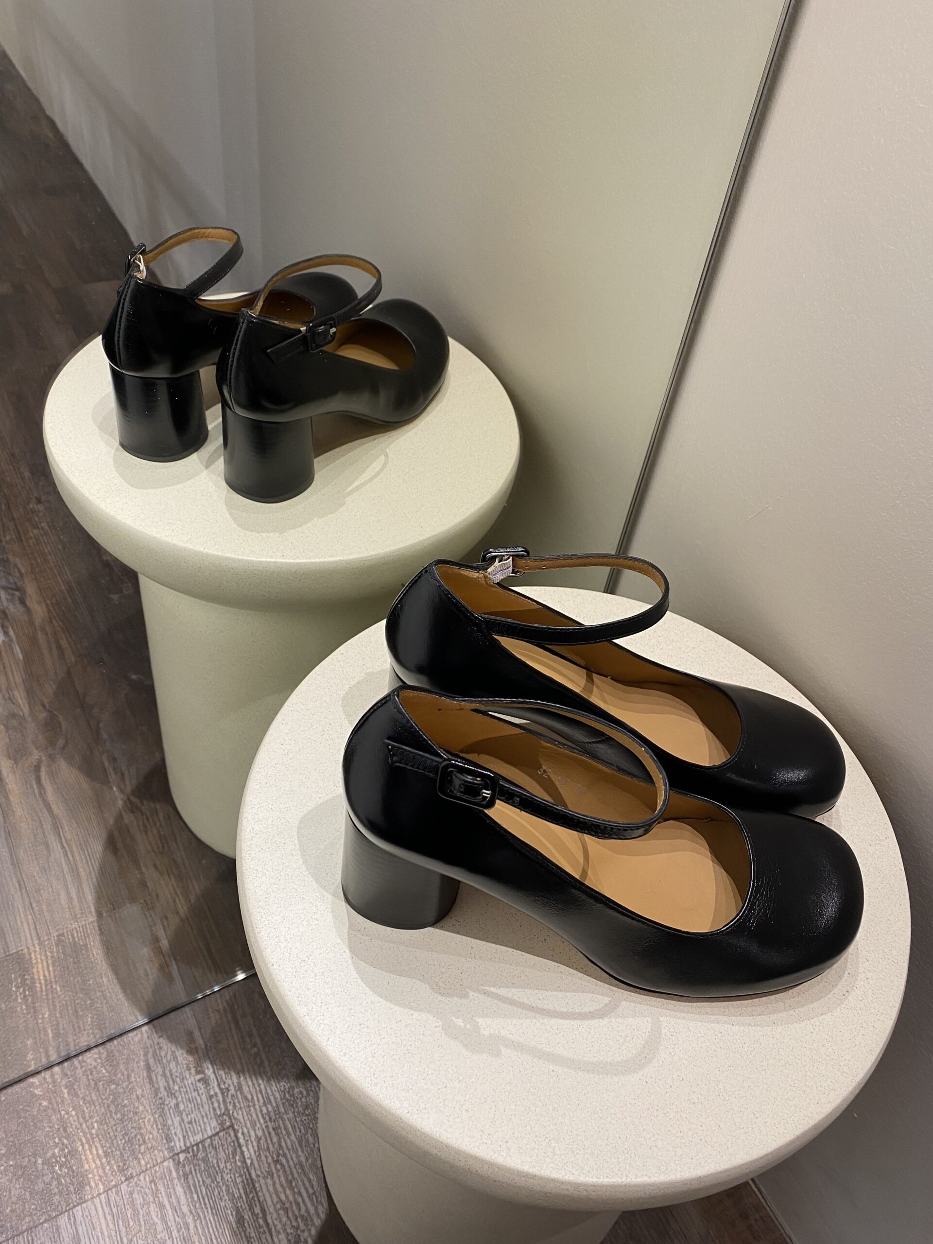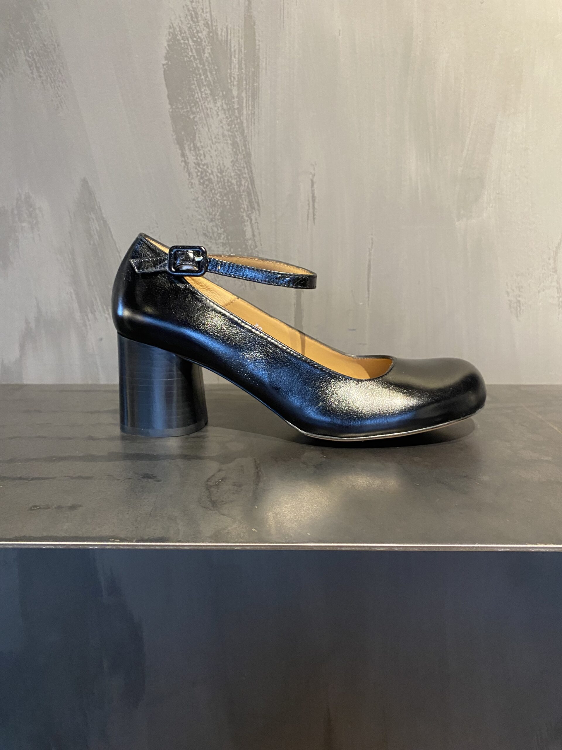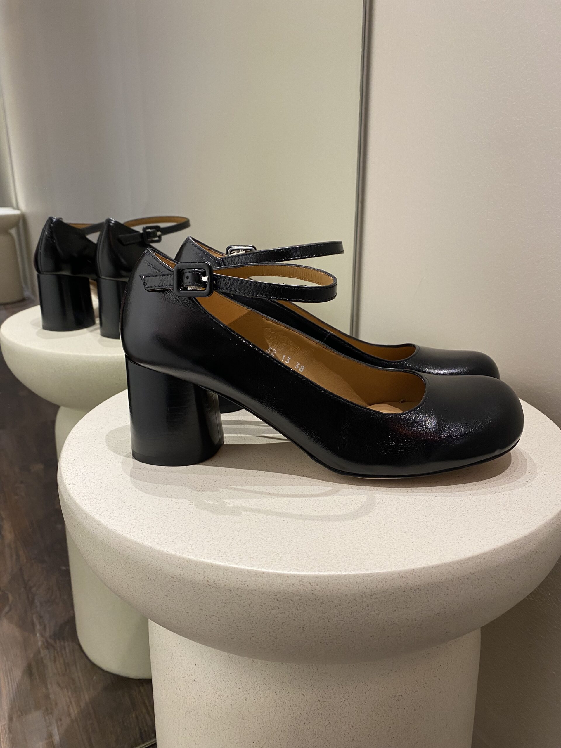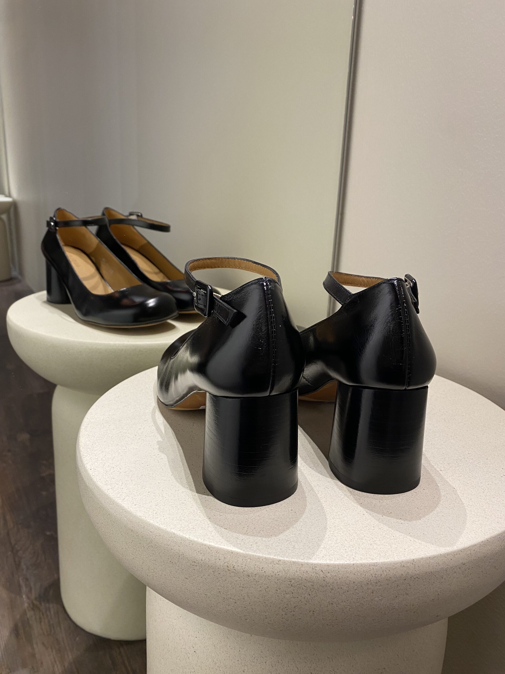 Fallegir hælaskór í svörtu leðri með smá glans. Tímalaust snið með rúmgóðri rúnaðri tá og þægilegum stöðugum hæl. Sniðið gerir þá einstaklega fallega á fæti, Audley eru snillingar í að gera snið sem að eru falleg á fæti. Ganga bæði hversdags sem og við fínni tilefni.