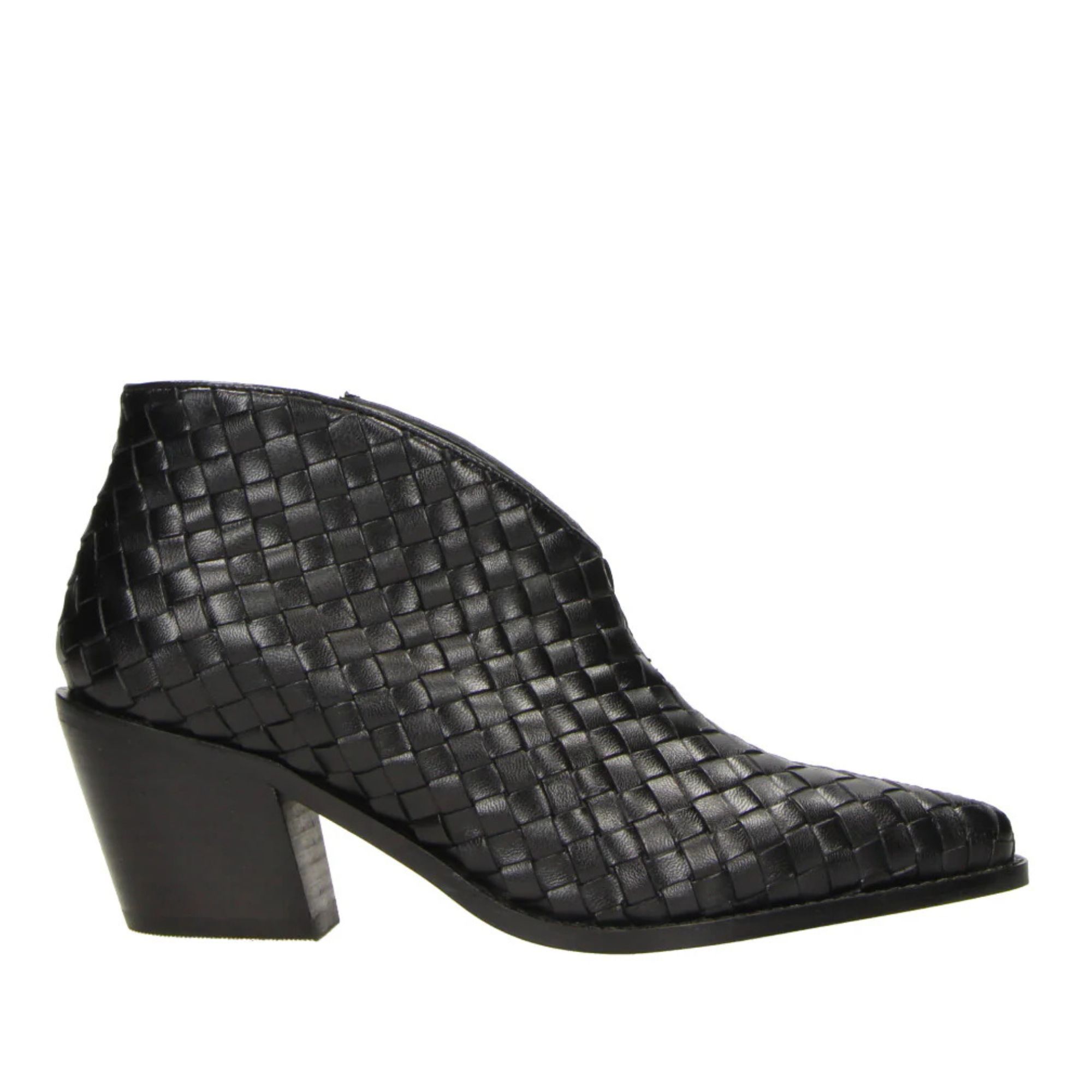 Ótrúlega fallegt snið sem að lengir og grennir fótinn. Klaufin gerir svo mikið og leðrið er svo flott, fléttað saman og gefur æðislega áferð á annars klassískt snið. Þægilegur 6 cm hæll í kúrekastíl.