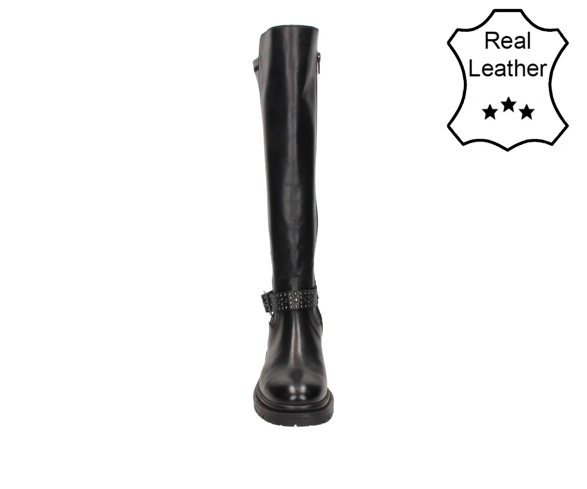 Æðisleg stígvél með smá hæl og flottri spennu um ökklann. Rennd að innanverðu og falleg möndlulaga tá. Stígvélin eru mjög mjúk og skórinn sjálfur er úr ekta leðri sem og ektra leður framan á stígvélunum, að aftanverðu er hinsvegar teygjanlegt leðurlíki þannig að þau gefa svolítið auka svigrúm yfir kálfann.