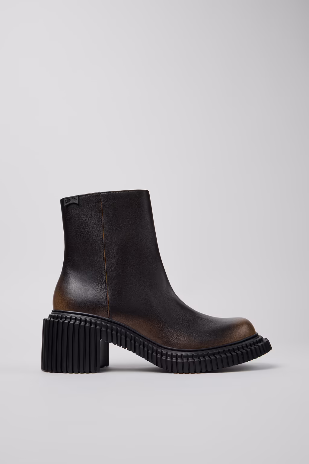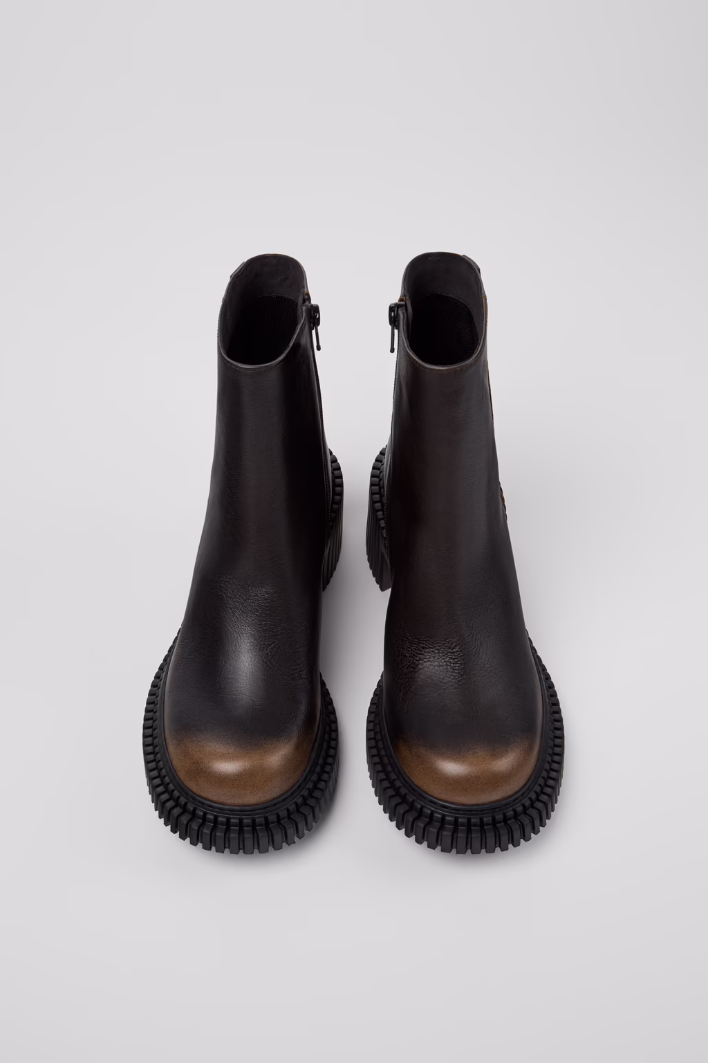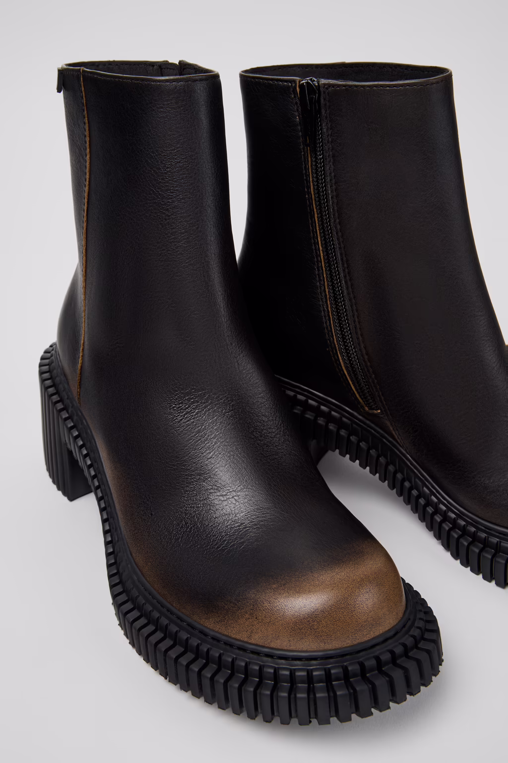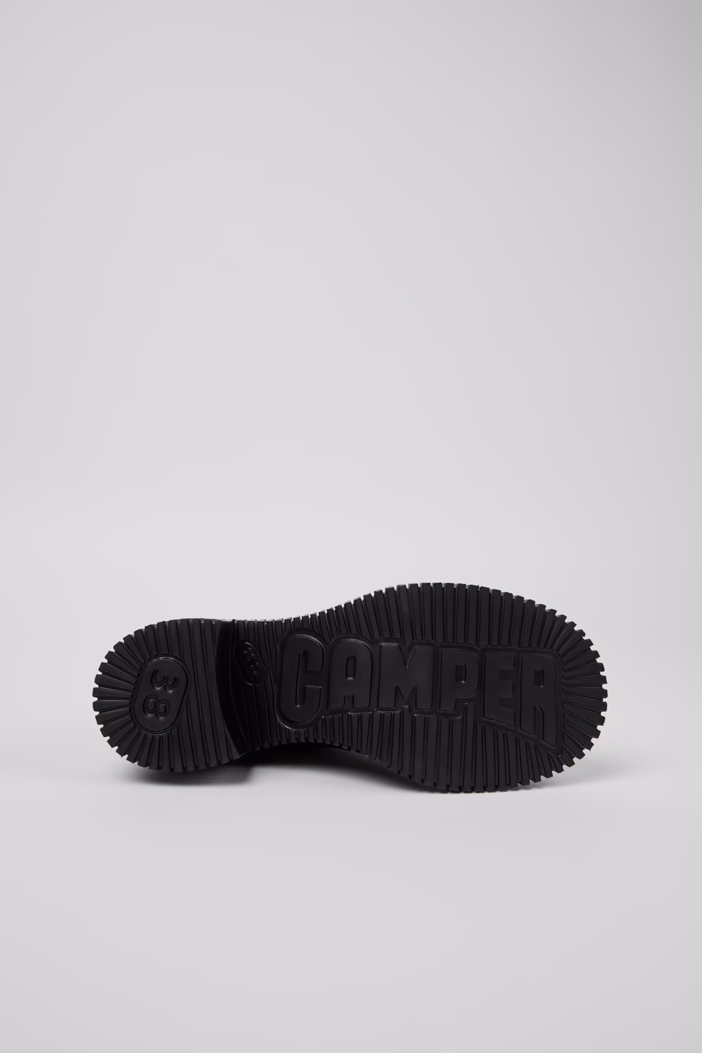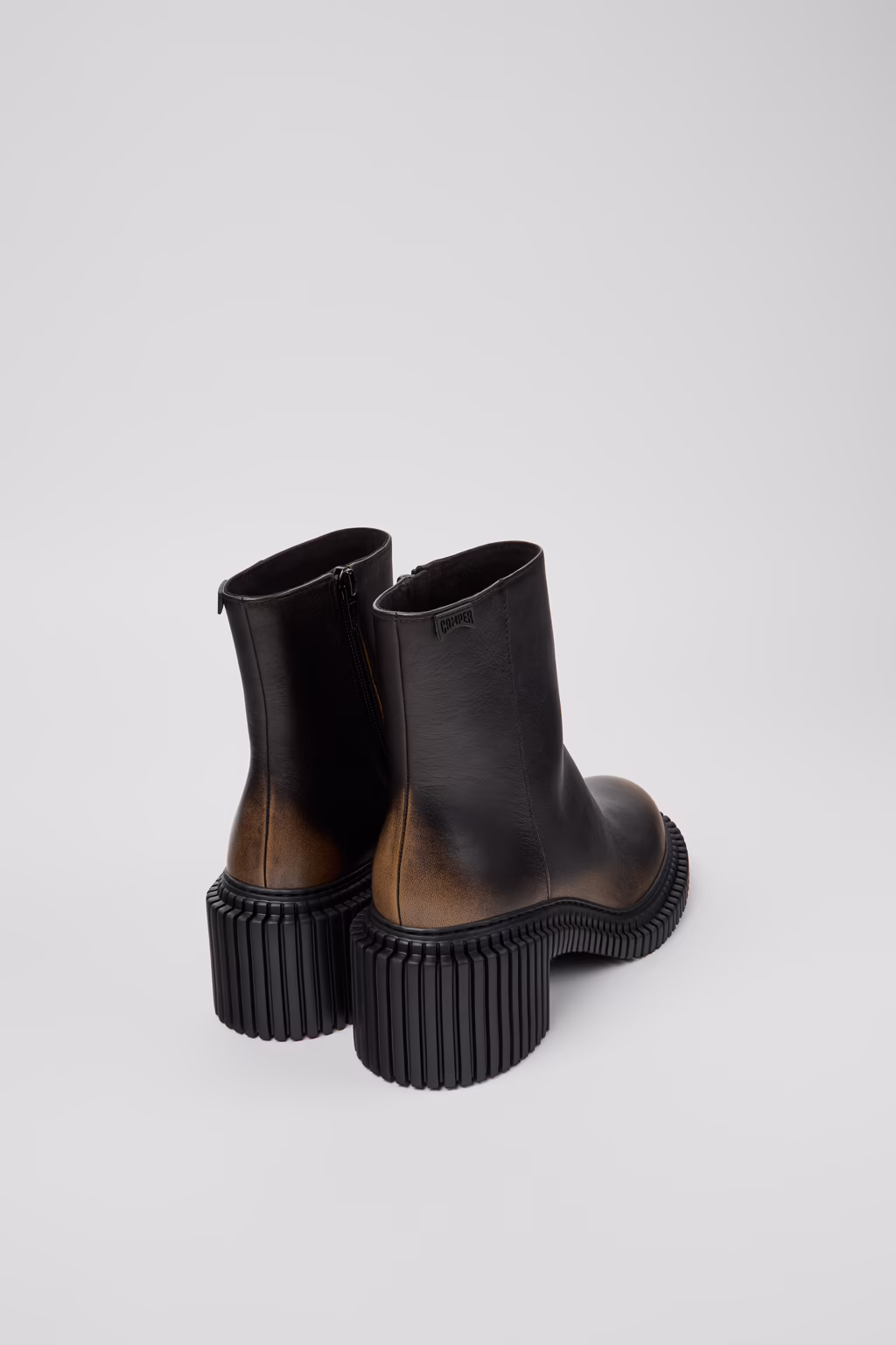 Camper kunna að gera flotta skó sem að fólk tekur eftir. Þeir eru líka einstaklega léttir og þægilegir. Hællinn á þessum skóm er 7cm en platformið undir sólanum er 3cm svo þeir eru ekki svo brattir. Grófir og skemmtilegir í ótrúlega fallegum lit, svartir en með brúnum lit á tánni og hælnum.