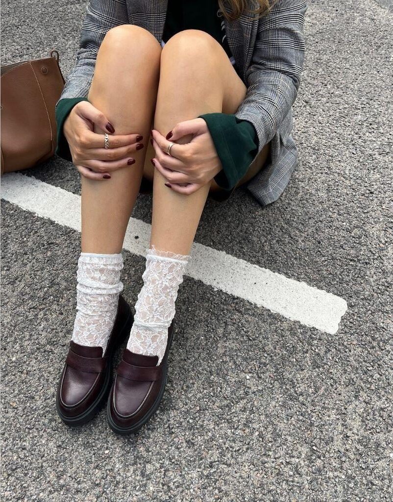 Fallegar mokkasíur með möndlulaga tá. Grófur sóli en samt stílhreint snið sem að passar við allt, gaman að poppa þá upp með skemmtilegum sokkum. Klassískir mokkasíu saumar og leðurband yfir ristina. Góður og stamur gúmmísóli.