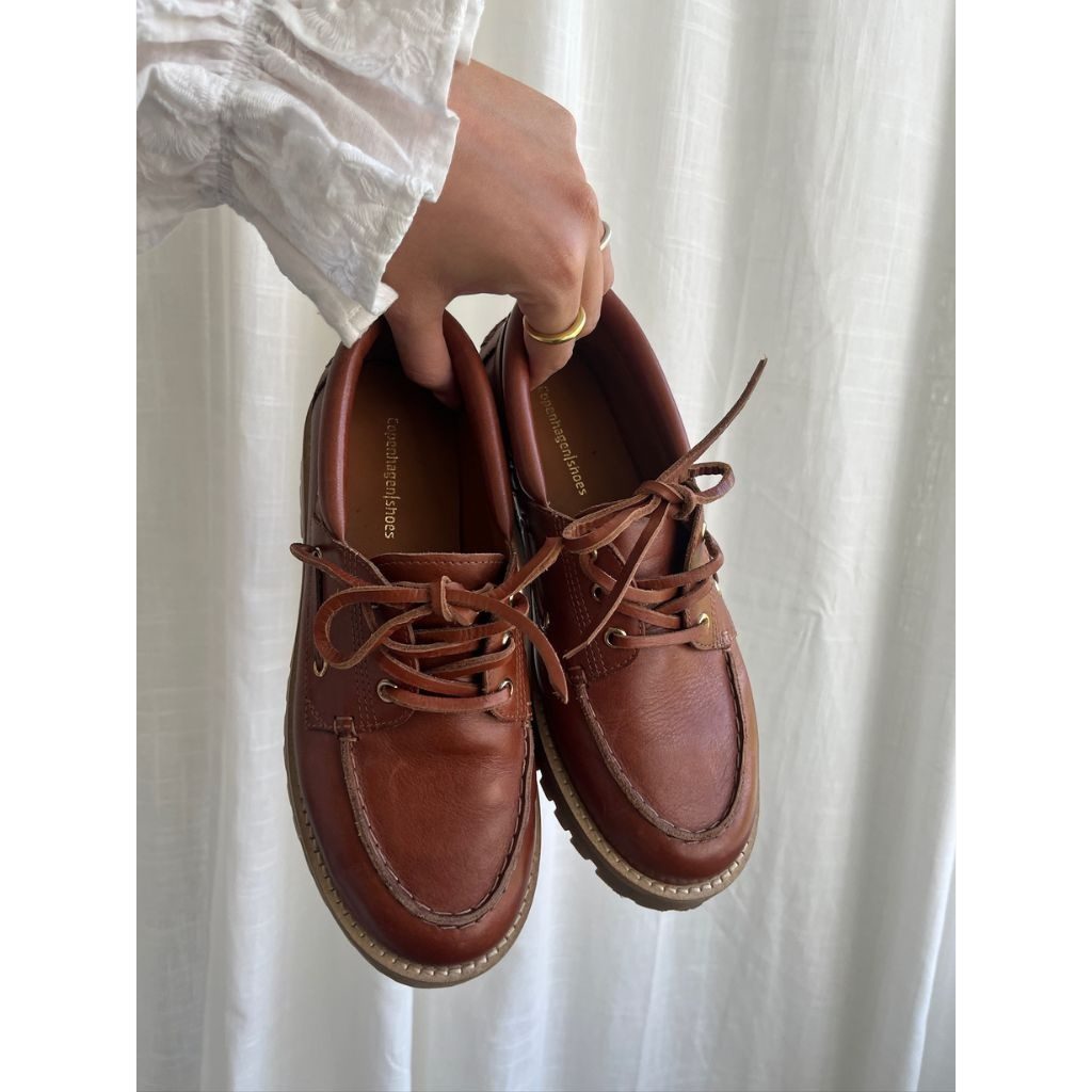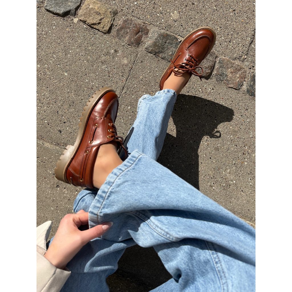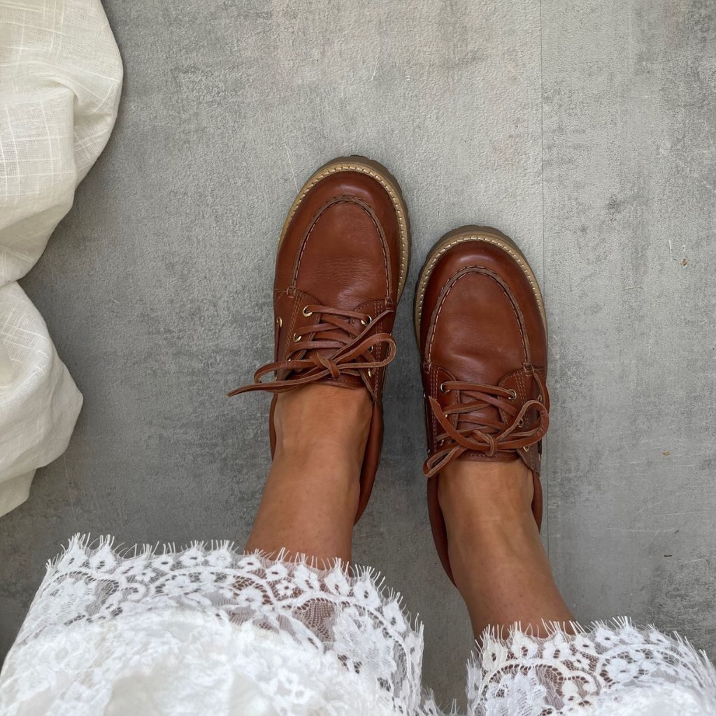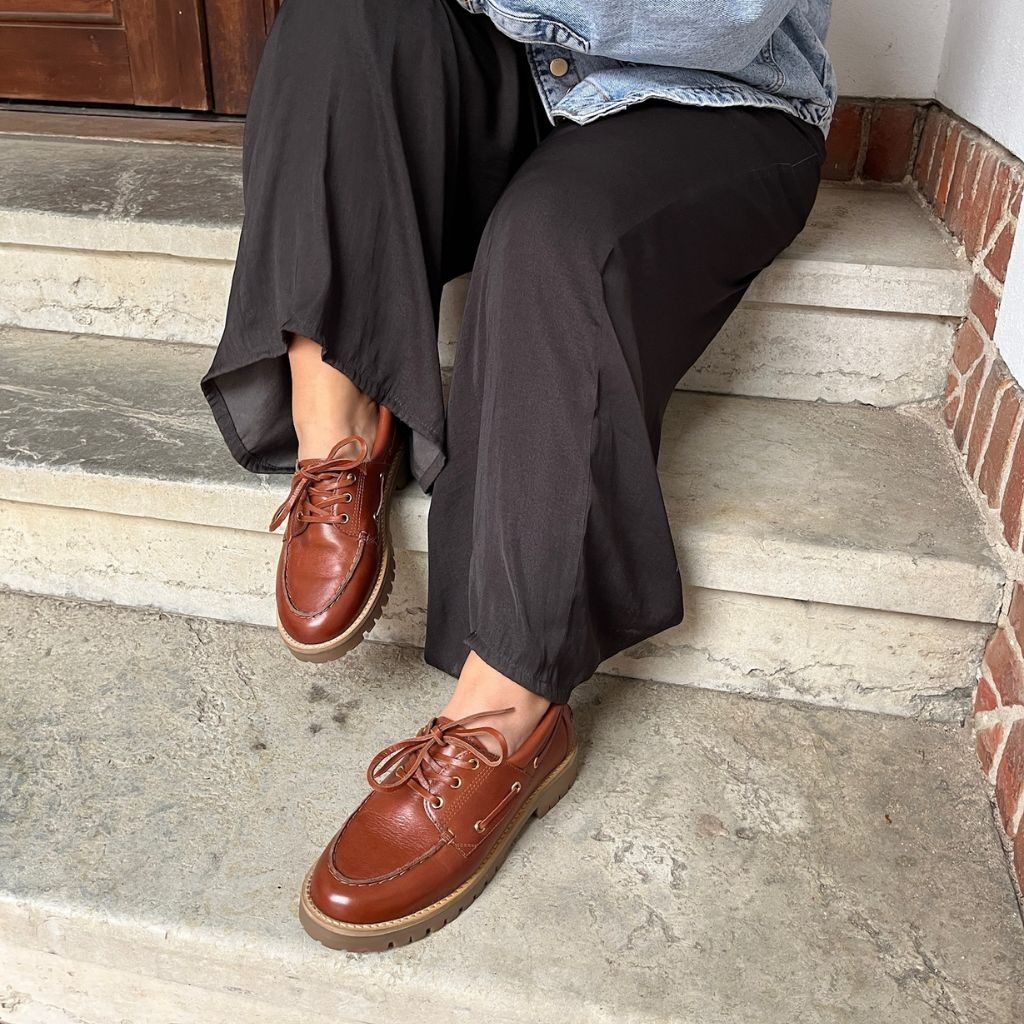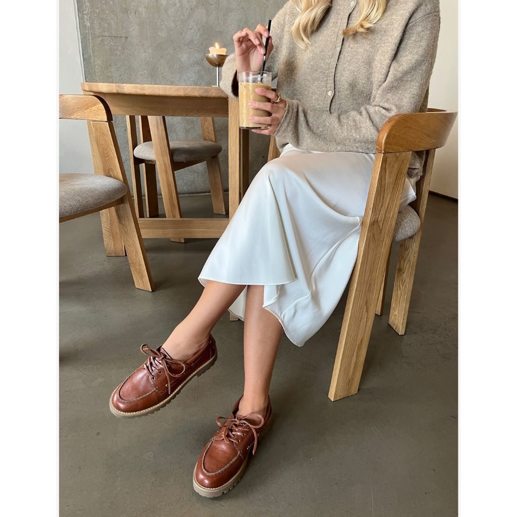 Fallegir bátaskór eins og þeir eru kallaðir í dökkbrúnu leðri. Mjög sætir í stílhreinu sniði en smáatriðin poppa þá heldur betur upp. Geggjaðir bæði hversdags og við fínni tilefni. Góður og stamur gúmmísóli.