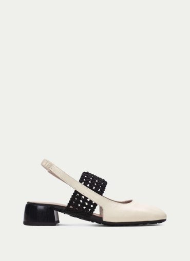 Æðislegir hælaskór frá Hispanitas. Svakalega mjúkir og þægilegir með þægilegum hæl. Rúnuð lokuð tá en opnir í hælinn, band fyrir aftan hæl og hekluð teygja yfir rist sem að heldur vel við fótinn. Svo æðislegir fyrir vorið og sumarið og einstaklega fallegir á fæti.