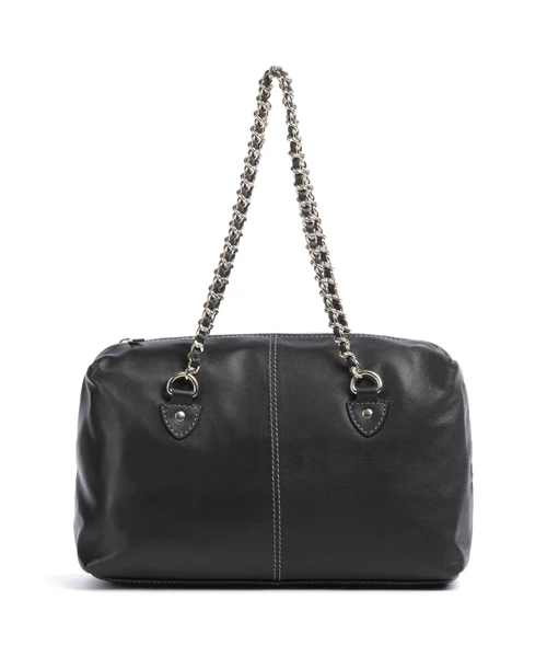 Ótrúlega mjúk og falleg leðurtasaka með gullkeðjum. Gull rennilás að utanverðu og tvö hólf að innanverðu. Æðisleg stærð, rúmgóð og flott við allt.