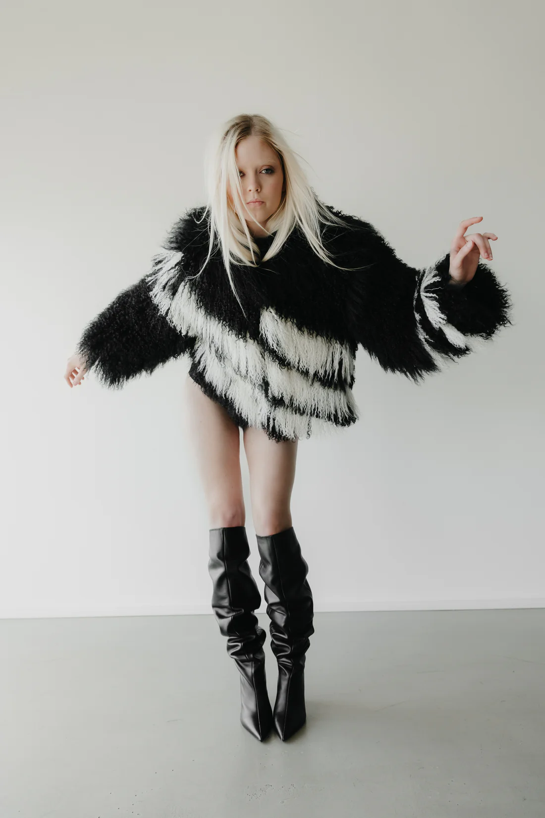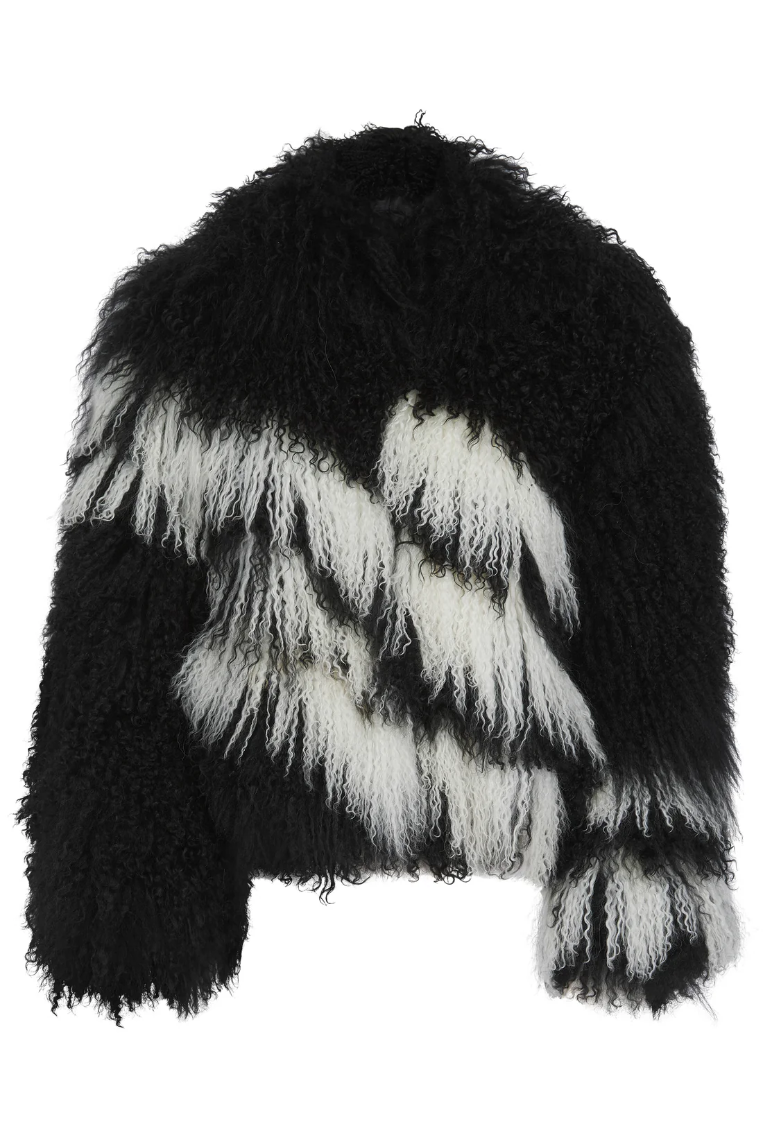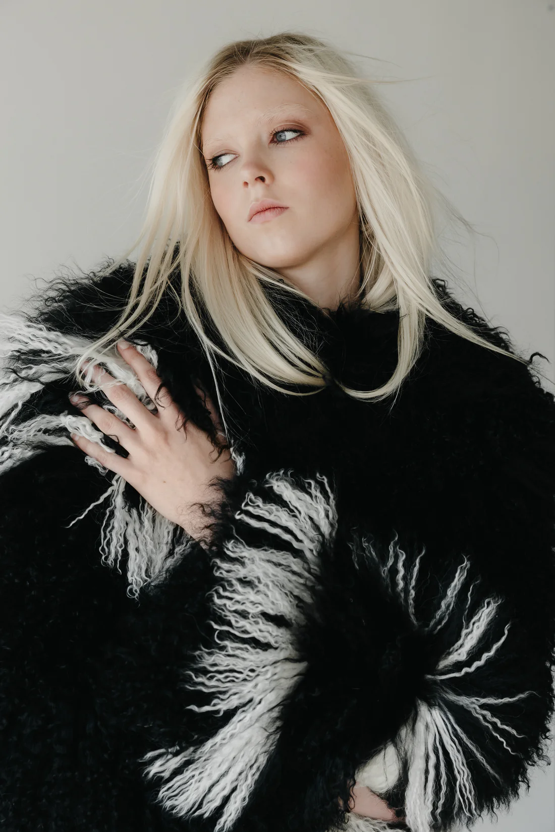 Vá hvað þetta er geggjaður pels! Úr Mongólskri ull sem að er sú besta og svo fallega löng og krulluð hár og alveg extra mjúk. Við elskum hvítu rendurnar sem að gera pelsinn alveg einstakan!