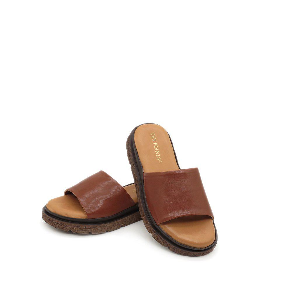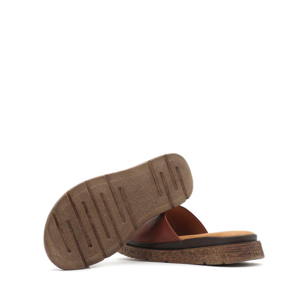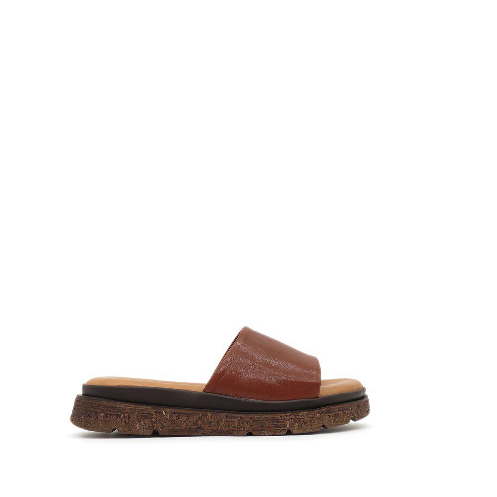 Fallegir sandalar með þykkum sóla, stílhreinir með einu bandi yfir ristina. Leðrið er í gullflokki hjá Leather Working Group, sem tryggir úrvalsgæði. Sólinn er skemmtilegur með smá brúnu í sem að brýtur þá upp, hægt að nota við allt og einnig hægt að nota sem inniskó.