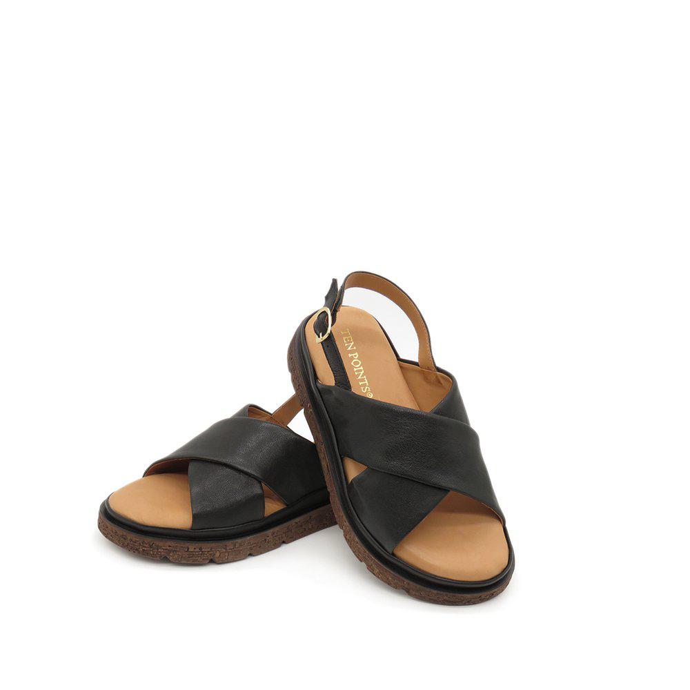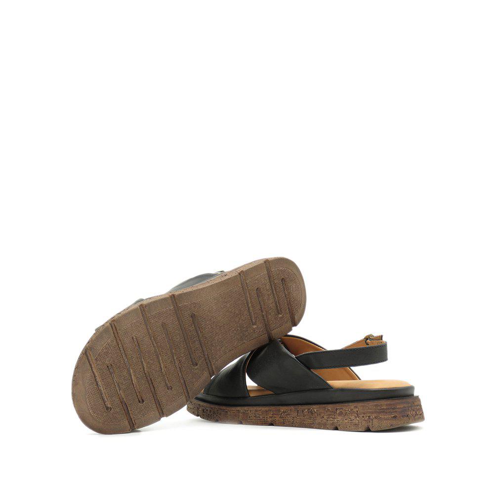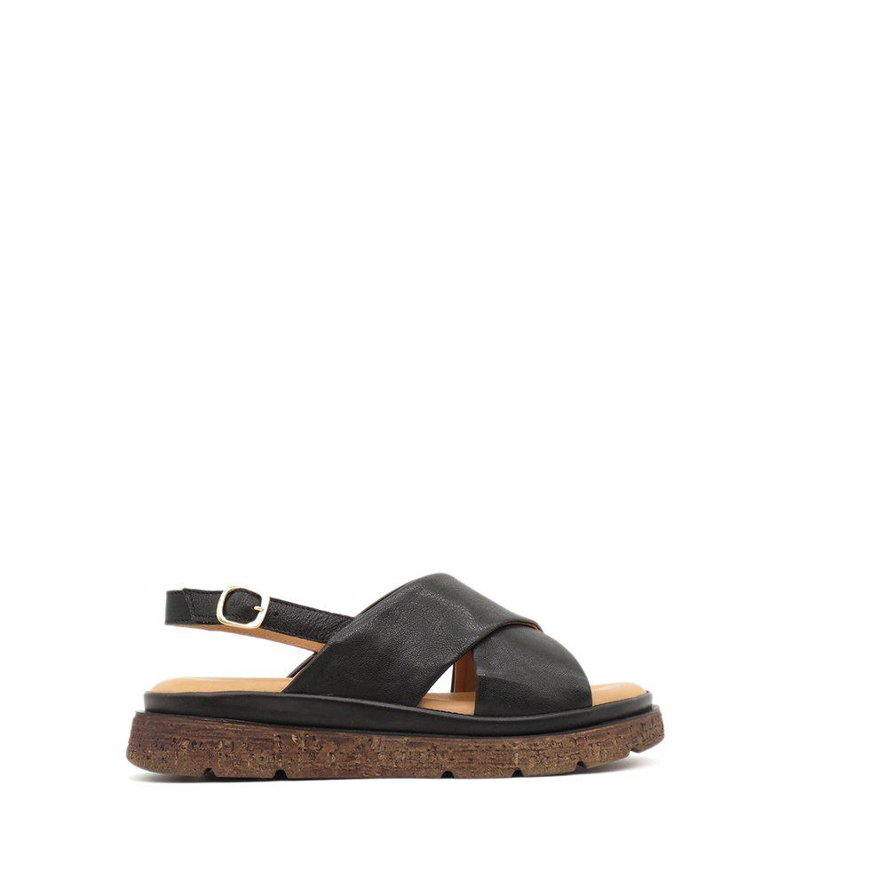 Fallegir sandalar með þykkum sóla, stílhreinir með krossbandi yfir ristina og stillanlegu bandi sem fer aftur fyrir ökkla. Leðrið er í gullflokki hjá Leather Working Group, sem tryggir úrvalsgæði. Sólinn er skemmtilegur með smá brúnu í sem að brýtur þá upp, hægt að nota við allt og einnig hægt að nota sem inniskó.