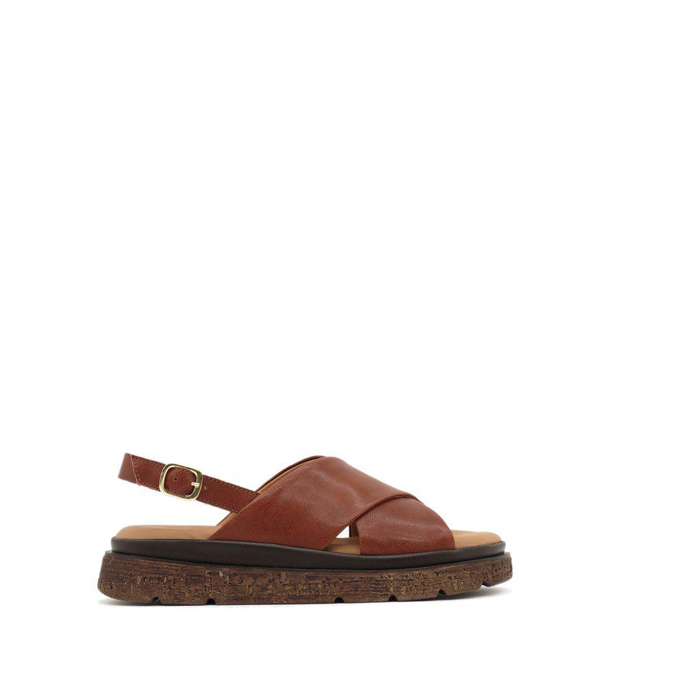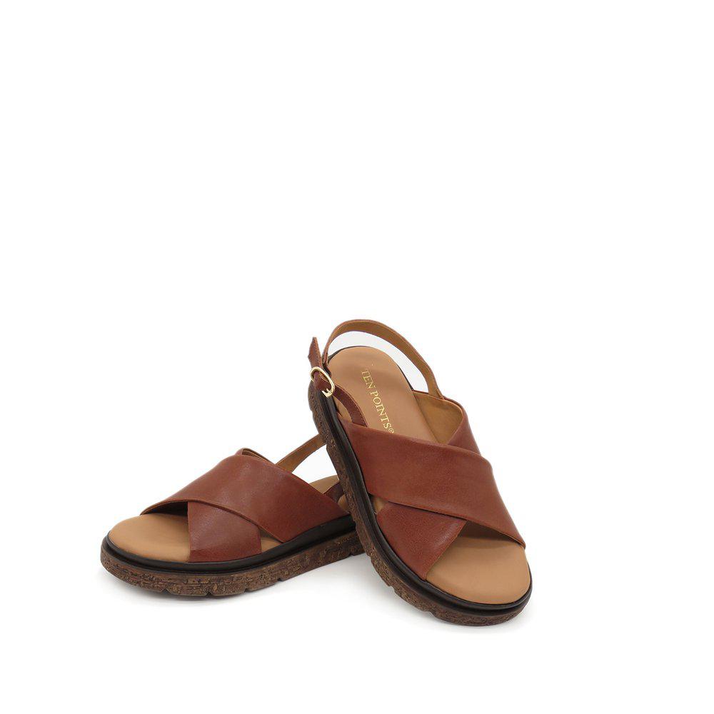 Fallegir sandalar með þykkum sóla, stílhreinir með krossbandi yfir ristina og stillanlegu bandi sem fer aftur fyrir ökkla. Leðrið er í gullflokki hjá Leather Working Group, sem tryggir úrvalsgæði. Sólinn er skemmtilegur með smá brúnu í sem að brýtur þá upp, hægt að nota við allt og einnig hægt að nota sem inniskó.