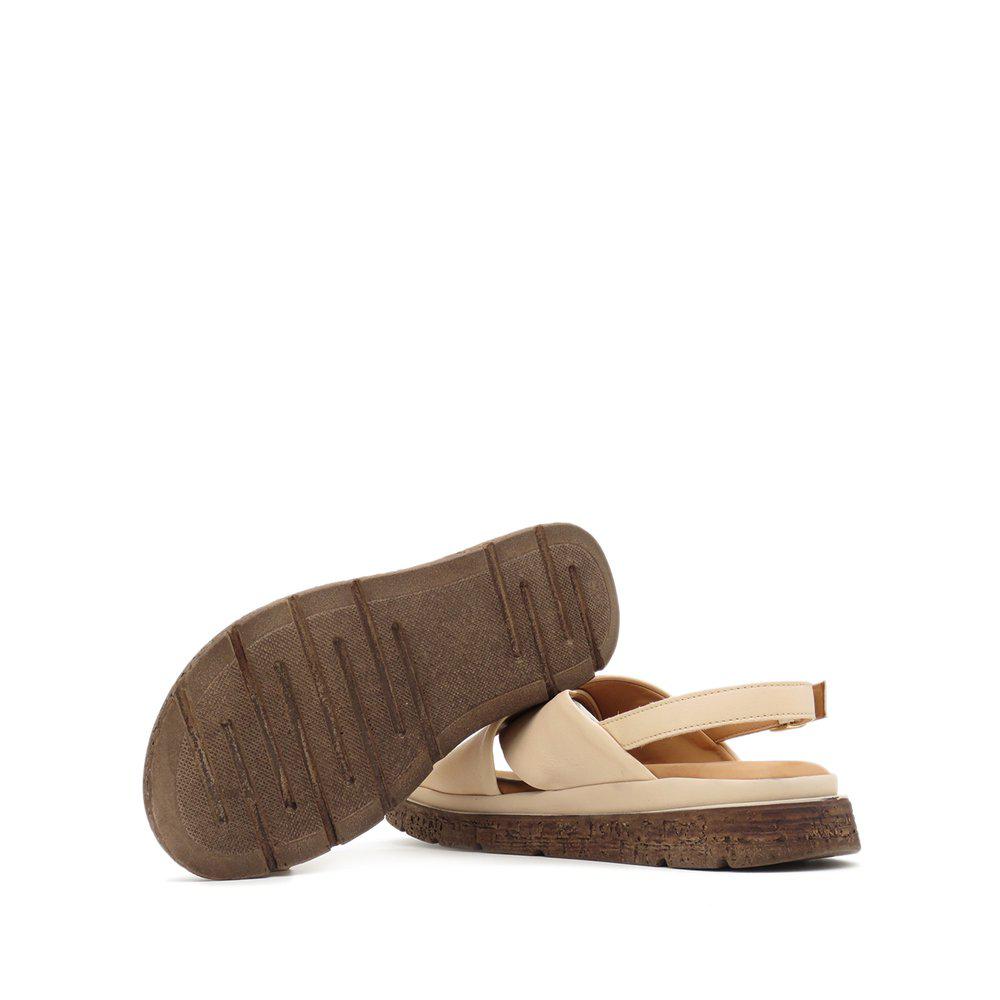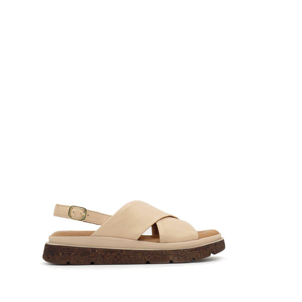 Fallegir sandalar með þykkum sóla, stílhreinir með krossbandi yfir ristina og stillanlegu bandi sem fer aftur fyrir ökkla. Leðrið er í gullflokki hjá Leather Working Group, sem tryggir úrvalsgæði. Sólinn er skemmtilegur með smá brúnu í sem að brýtur þá upp, hægt að nota við allt og einnig hægt að nota sem inniskó.
