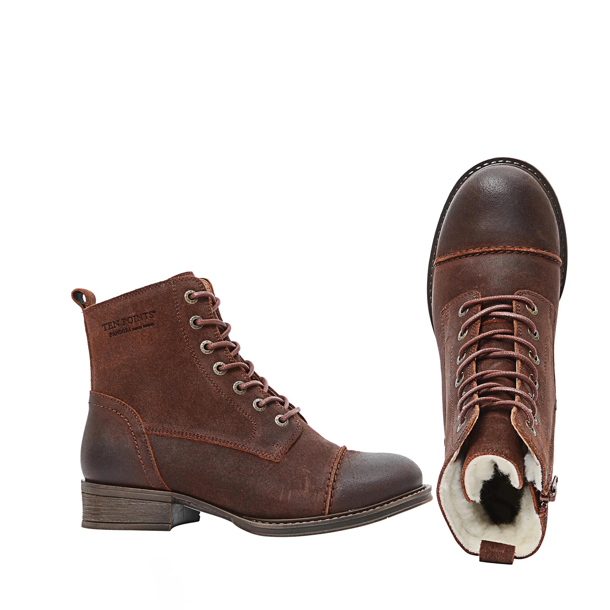 Fallegir og einstaklega vandaðir leðurskór frá Ten Points. Gott pláss er í tánni og þrengja þeir hvergi að, ekta ull að innan og eru þeir með reimum og rennilás á hlið. Frábærir og stílhreinir vetrarskór í ótrúlega fallegum lit.